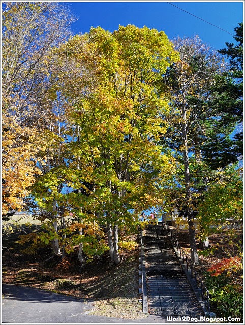 富良野移動到三笠市的這段距離,幾乎是山路,但沿途的原始山林,被秋天妝點上橘紅色衣裳,開在路上,處處是美景,也十分愉快。